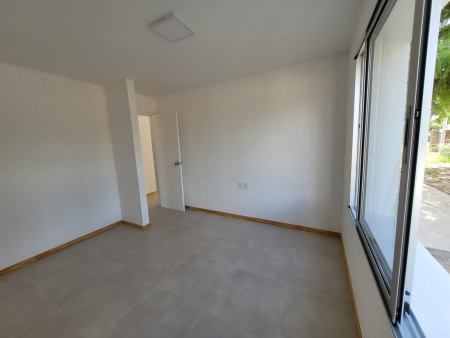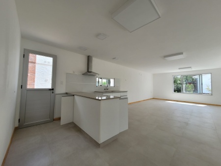 Casa de 2 dormitorios, muy luminosa, cocina integrada al living con mobiliario bajo mesada, con puerta ventana orientada al frente.